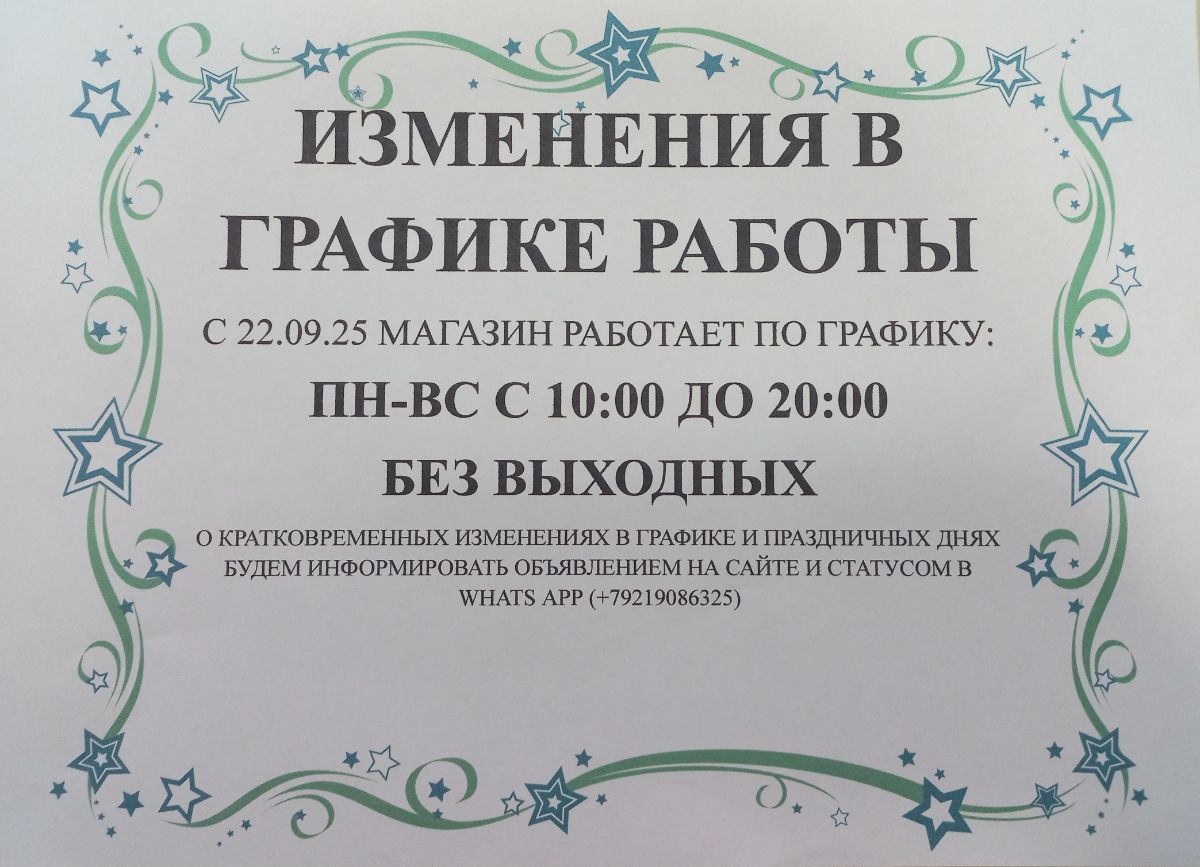 Сообщаем вам, что на ближайший период изменится график работы магазина.
